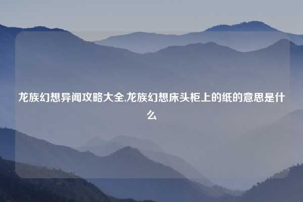 游戏资讯 龙族幻想异闻攻略大全,龙族幻想床头柜上的纸的意思是什么 龙族幻想异闻攻略大全,龙族幻想床头柜上的纸的意思是什么?触发地点:西伯利亚小屋任务流程:找到床头柜上面的纸打开阅读,即可触发任务,写着爱你三千次,然后出门直走会在悬崖边找到一个小女孩,点击女孩完成异闻。其他异闻任务流... 2023-10-11 132 阅读 0 评论 天美资源网