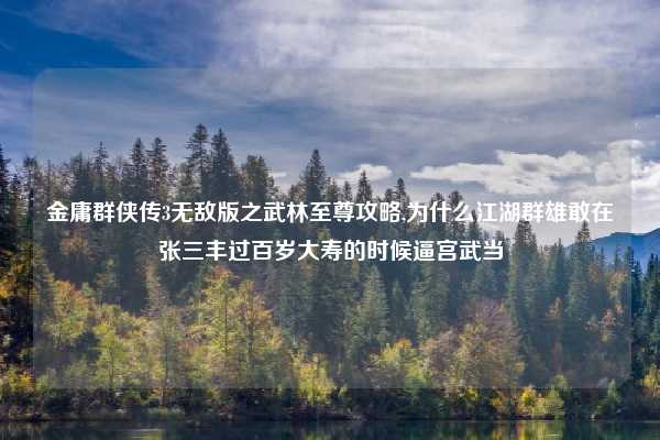 游戏资讯 金庸群侠传3无敌版之武林至尊攻略,为什么江湖群雄敢在张三丰过百岁大寿的时候逼宫武当 金庸群侠传3无敌版之武林至尊攻略,为什么江湖群雄敢在张三丰过百岁大寿的时候逼宫武当?浮萍谈武侠第二十七期:《百岁寿宴》浮萍在二十六期《张翠山之死》回顾了张翠山回到中原的始末,也分析了他是死于自己的道德绑架。这一期主要... 2023-07-06 125 阅读 0 评论 天美资源网