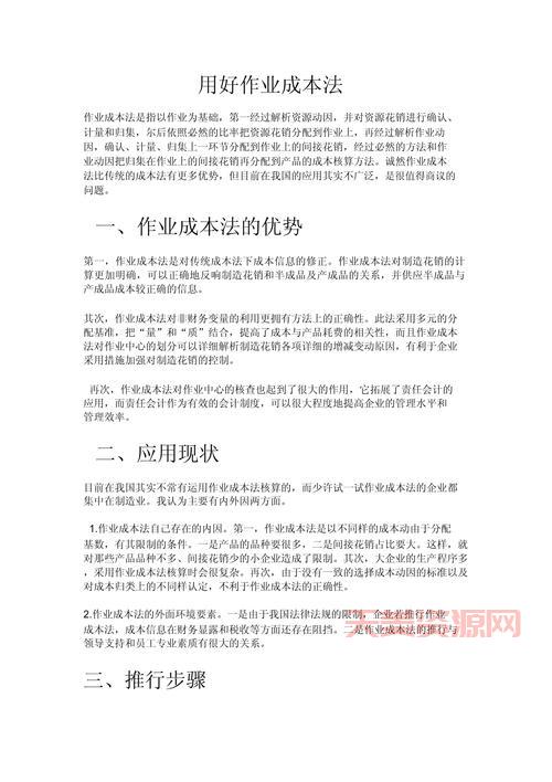 综合信息 作业成本法有什么好处?企业降本增效的秘密武器! 今儿跟大家伙儿聊聊我咋用作业成本法(ABC)来给咱这小作坊算账的。我这小作坊生意不大,就几样产品,成本算起来也简单,进货价、卖出价,刨去水电费、人工费,剩下的就是赚的。可后来产品种类一多,我发现这老办法不灵,感觉有些... 2025-03-06 151 阅读 0 评论 天美资源网