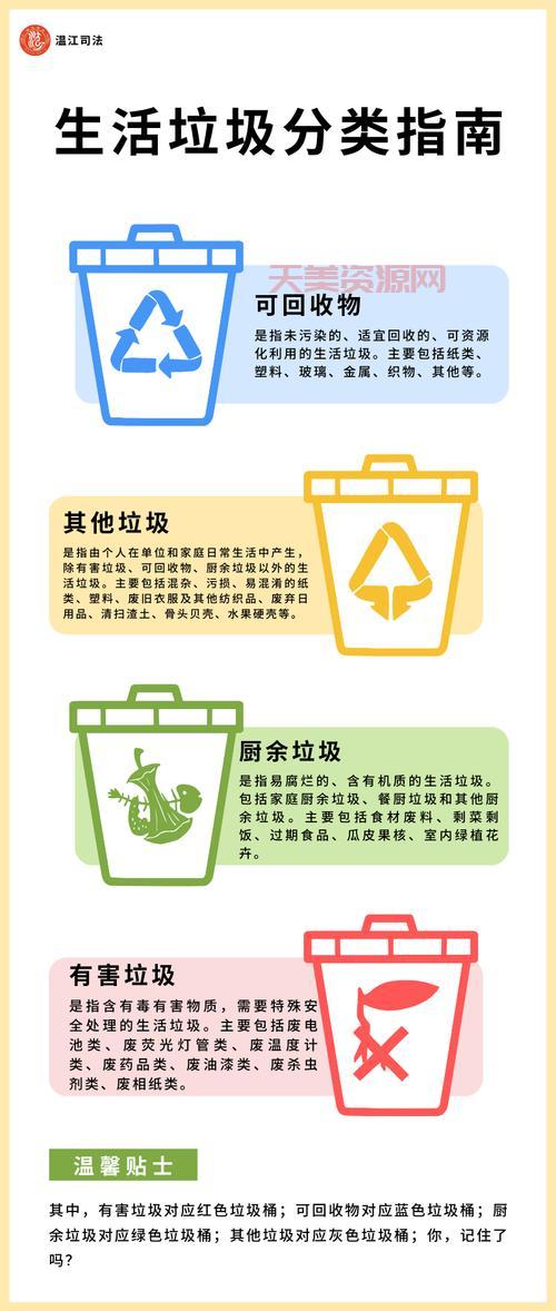 我得弄清楚这垃圾到底咋分。啥是干垃圾、湿垃圾、可回收垃圾、有害垃圾?这可把我给整懵。于是我赶紧上网查资料,又问问邻居,这才算是搞明白大概。