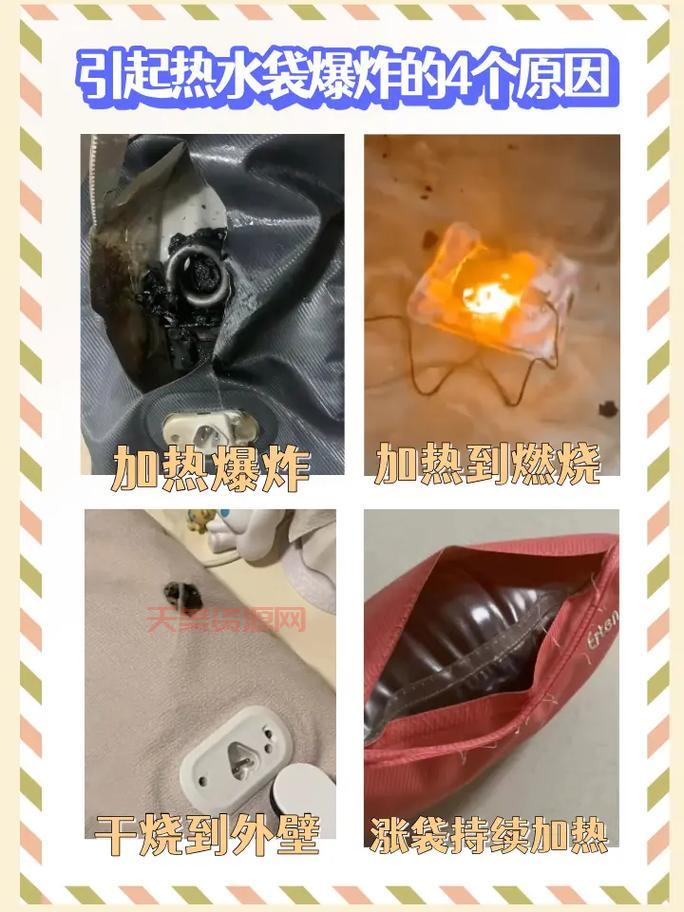 后来我冷静下来,仔细回想一下,觉得这热水袋肯定有问题。我上网查一下,才知道热水袋还分好几种,有一种叫电极式的,很容易发生爆炸,早就被禁止生产!我买的估计就是这种。