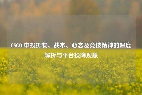 本文聚焦于CSGO中的相关内容,进行多维剖析,一方面探讨了CSGO中的投掷物运用战术,其在战斗中对局势掌控、进攻防守等方面有着重要作用;另一方面深入分析了玩家在游戏中的心态,良好心态在应对激烈对抗时至关重要,还涉及竞技精神层面,研究其如何影响玩家在游戏中的表现与行为,也提及了csgo平台投降这一现象,对其背后的原因及影响等方面可能也有所探讨。