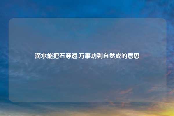 【词条】:滴水能把石穿透,万事功到自然成【读音】:dī shuǐ nēng bǎ shí chuān tòu ,wàn shì gōng dào zì rán chéng。【释义】:水滴在岩石上,时间长了,就会穿出一个小洞。任何事情只要努力了就会成功。比喻只要努力就会成功。【近义词】:持之以恒、积习沉舟、磨铁成针、聚蚊成雷【反义词】:瞒天大谎、思念存想、不堪设想、其验如响、叩石垦壤、矮人看场、积财吝赏、熙熙壤壤、惜指失掌