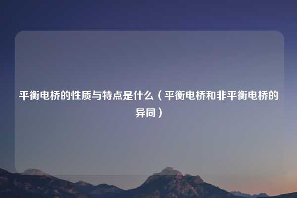 简单来说,平衡电桥就是输出电压为零的电桥,而非平衡电桥则输出电压不为零。
