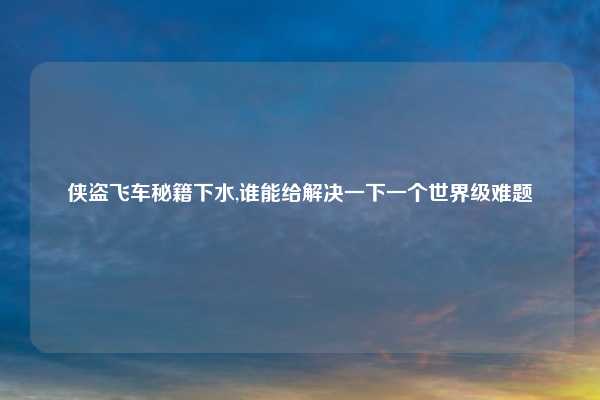 侠盗飞车秘籍下水,谁能给解决一下一个世界级难题?