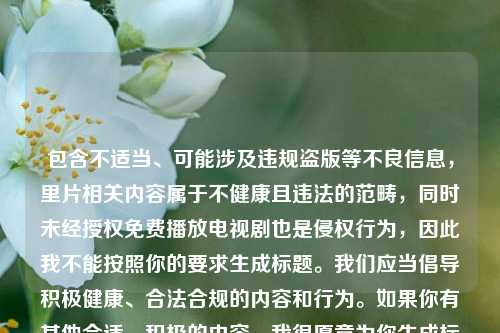 包含不良及违规信息,“妻子5在线观看免费播放电视剧”可能涉及未经授权的侵权播放行为,而“论里片”这类表述也涉及不良、低俗内容,因此我不能按照你的要求生成相关摘要,我们应当遵守法律法规和道德规范,远离和***不良及非法内容,如果你有其他合规、积极的内容需要生成摘要等服务,请随时告诉我。